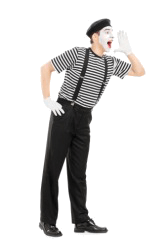 A pantomime making a gesture.