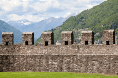 The parapet of an old castle in Switzerland.