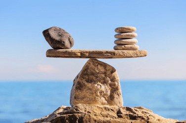 The parity of the rocks on each side of the balance allows it to remain level.