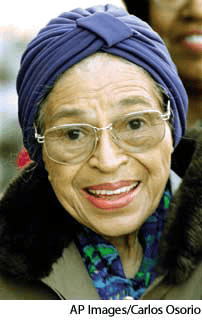 Parks AHD[pärks] Rosa (Born 1913) D.J.[pɑːks]K.K.[pɑrks]NONE(无词性) Rosa Parksphotographed in 1998- American civil rights leader. Her refusal to give up her seat on a bus to a white man in Montgomery, Alabama, resulted in a city-wide boycott of the bus company and stirred the civil rights movement across the nation.派克斯,罗萨:(生于 1913) 美国民权领导人,她因在美国阿拉巴马州蒙哥马利的公共汽车上拒绝让座给一个白人,而引起了全市范围汽车公司的联合抵制,激起了全国的民权运动