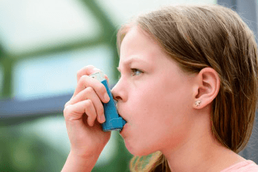 The young girl's occasional paroxysm due to her asthma is easily treated with an inhaler.