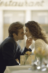 A passionate couple having a romantic dinner.