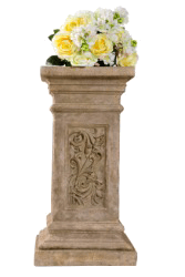Flowers on a pedestal.
