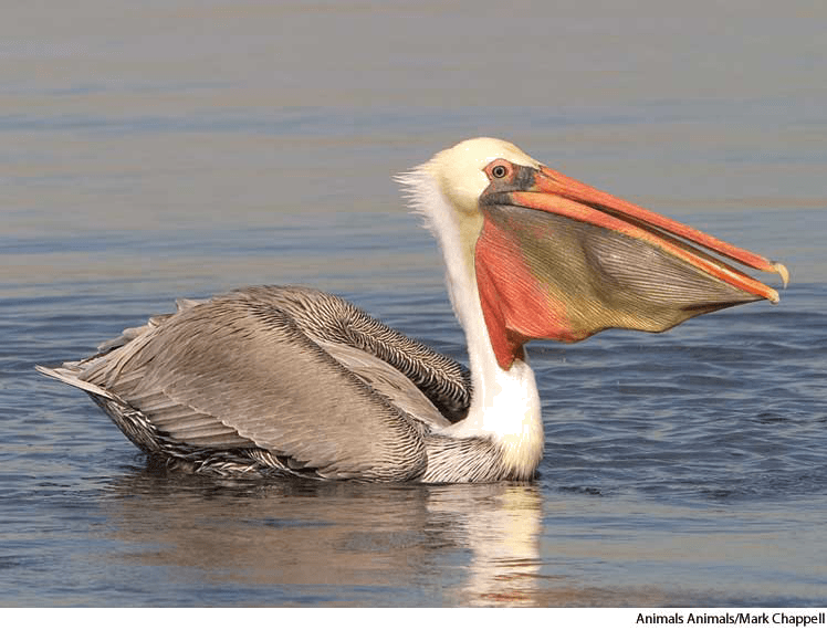 1. Any of various large, web-footed birds of the genusPelecanus of tropical and warm regions, having a long straight bill from which hangs a distensible pouch of skin for catching and holding fish. 鹈鹕,塘鹅:任一种生活在热带和温带地区的体型较大且蹼足的鹈鹕 属鸟,长有长而直且其下垂一用来捕食和盛放鱼的可膨胀皮囊的喙