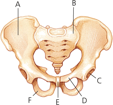 pel·vis AHD[pĕlʹvĭs] D.J.[ˈpelvɪs]K.K.[ˈpɛlvɪs]n.(名词)【复数】 pel.vis.es 或 pel.ves [-vēz] anterior view of an adult male human pelvisA. iliumB. sacrumC. acetabulumD. pubisE. pubic symphysisF. ischiumCarlyn Iverson- A basin-shaped structure of the vertebrate skeleton, composed of the innominate bones on the sides, the pubis in front, and the sacrum and coccyx behind, that rests on the lower limbs and supports the spinal column.骨盆:脊椎动物靠下肢支撑并支撑脊柱的盆状骨骼,两旁由髋骨组成,前面是耻骨,后面由骶骨和尾骨构成