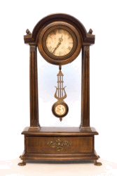 A pendulum in an old fashioned clock.