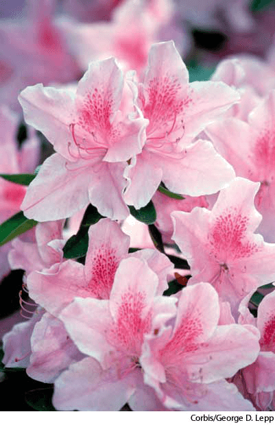 1. Any of various shrubs of the genusRhododendron having showy, variously colored flowers. 杜鹃花:一种杜鹃花属 灌木,有着鲜艳的不同颜色的花