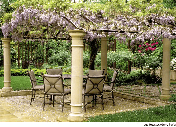 per·go·la AHD[pûrʹgə-lə] D.J.[ˈpɜːgələ]K.K.[ˈpɝgələ]n.(名词) pergola- An arbor or a passageway of columns supporting a roof of trelliswork on which climbing plants are trained to grow.藤架:林荫道或通道两侧由柱子支起的棚架,上面爬满了人工种植的植物