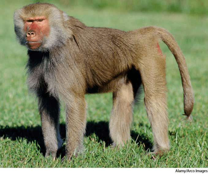 ba·boon AHD[bă-bo͞onʹ] D.J.[bæˈbuːn]K.K.[bæˈbun]n.(名词) baboonhamadryas baboonPapio hamadryas- Any of several large, terrestrial African and Asian monkeys of the family Cercopithecidae, especially of the genusPapio or Chaeropithecus and related genera, characterized by an elongated, doglike muzzle, a short tail, and bare calluses on the buttocks. 狒狒:一种猕猴科的大型、陆生的非洲和亚洲的猴子,尤指狒狒属 或 Chaeropithecus 及相关的种属,其特征为有一长的象狗一样的口鼻和短尾,臀部有一裸露的胼胝