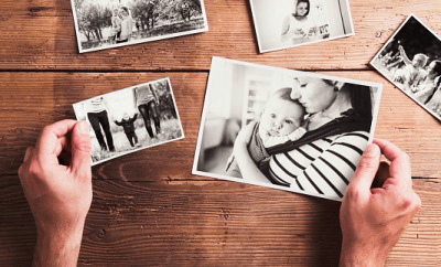 Sorting through family photographs.