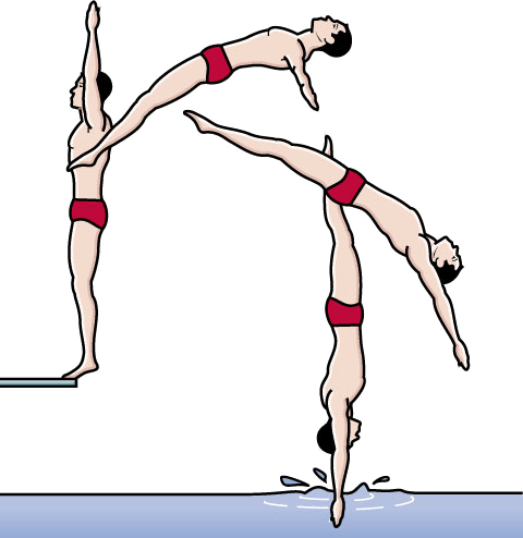 向后跳水:跳水者背向水面从跳板或跳台上往下跳的动作