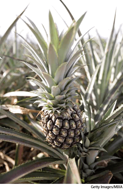 pine·ap·ple AHD[pīnʹăp'əl] D.J.[ˈpaɪnˌæpəl]K.K.[ˈpaɪnˌæpəl]n.(名词) pineappleAnanas comosus- A tropical American plant(Ananas comosus) having large swordlike leaves and a large, fleshy, edible, multiple fruit with a terminal tuft of leaves. 菠萝:美洲热带凤梨科植物(凤梨 凤梨属) ,具有大如剑的叶子和很多大、肉质、可食并伴有一簇叶子的果实
