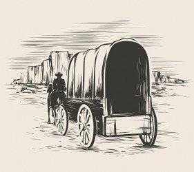 Pioneers would sometimes travel in covered wagons when they headed into the western prairies.