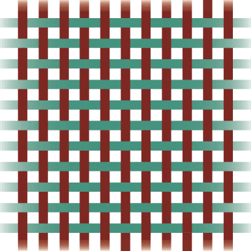 平纹纺织:横向线和纵向线交替编织的一种织法,形成棋盘状格式图案 也作