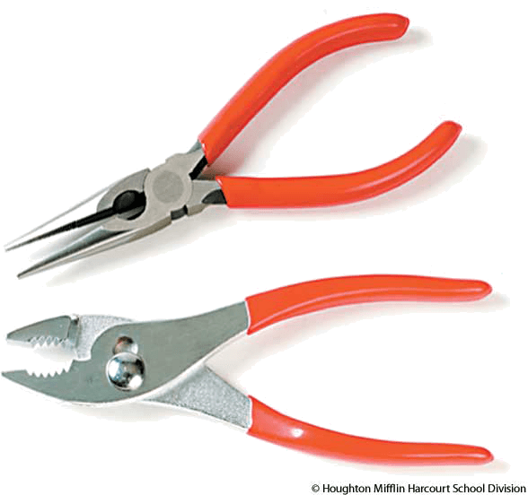 1. pliers A variously shaped hand tool having a pair of pivoted jaws, used for holding, bending, or cutting. pliers 钳子:一种有各种形状的手工工具,它有一对置于枢轴上的鄂夹,用来折叠、弯曲或切割