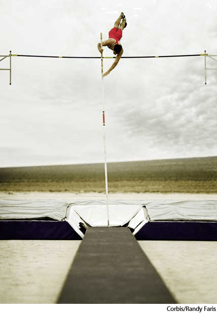 - A vault made with the aid of a long pole.借助一根长竿的跳跃
