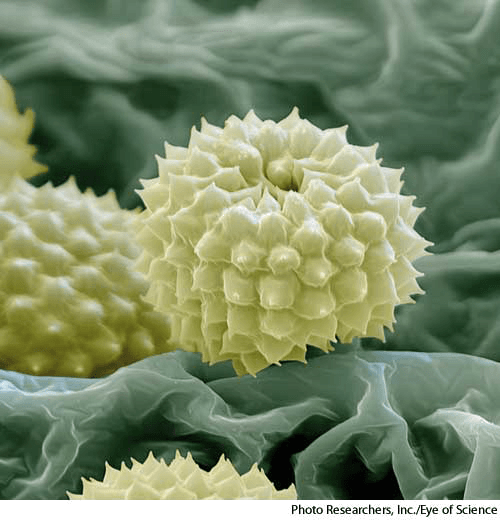 pol·len AHD[pŏlʹən] D.J.[ˈpɒlən]K.K.[ˈpɑlən]n.(名词) pollentop: photomicrograph of ragweed pollenbottom: photomicrograph of cherry pollen pollen- The fine, powderlike material consisting of pollen grains that is produced by the anthers of seed plants.花粉:由种子植物的花药所产生的含有花粉粒的粉粒状的细致物质
