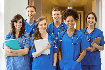 A group of medical students attending the postgraduate program at the university.