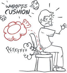If you want to play a good prank on someone, place a whoopee cushion on his chair.