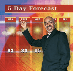The weatherman predicts the 5 Day Forecast.