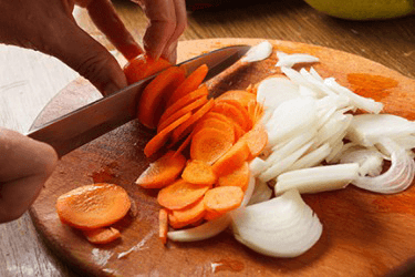 Cutting vegetables in preparation for making soup.