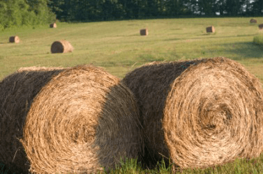 Bales of hay in a field.