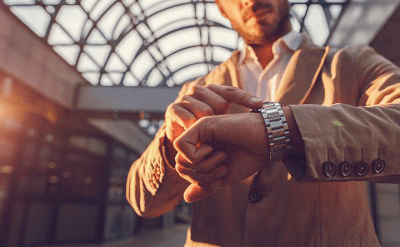 Because Brett was prompt for his flight, he had enough time to grab breakfast before boarding the plane.