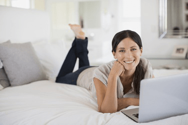 She is laying in a prone position on her bed.