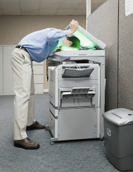 Andy is up to his usual puerile behavior by making a photocopy of his face.