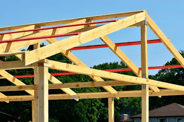 The purlins (highlighted in red) support the rafters in roof construction.