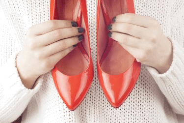 She will purloin her cousin's red shoes because they go perfectly with her outfit.