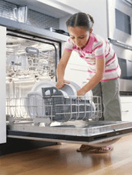 One of Jazmine's chores is to put the dishes in the dishwasher.