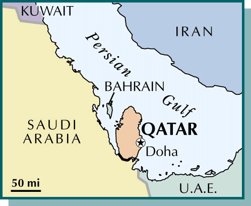Qa·tar AHD[käʹtär', kə-tärʹ] D.J.[ˈkɑːˌtɑː, kəˈtɑː]K.K.[ˈkɑˌtɑr, kəˈtɑr]NONE(无词性) - A country of eastern Arabia on a peninsula in the southwest Persian Gulf. It was under British protection from 1916 until 1971, when it became independent. Oil was first produced commercially in 1949. Doha is the capital. Population, 220,000.卡塔尔:阿拉伯东部一国家,位于波斯湾西南一半岛上,从1916年到1971年,它一直处在英国的保护之下,在此期间开始走向独立。第一次商业性地生产石油是在1949年。首都是多哈,人口220,000