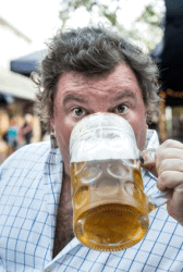 A man quaffs a beer.