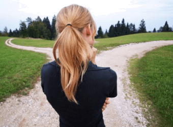 This woman is in a quandary as to which way to go.