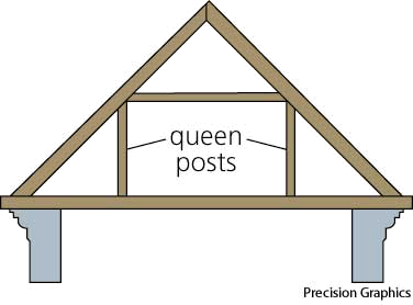 衍架双柱:两根直立支撑柱之一,从屋顶的最高点垂直等距地设在椽子和系梁之间