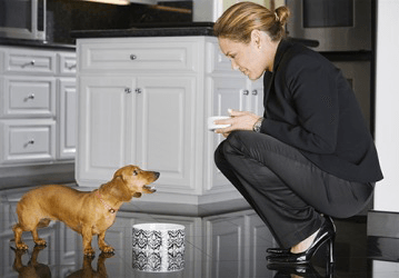 She hoped to quell her dog's barking by giving him food.