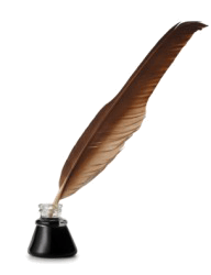 A quill being used as a pen.