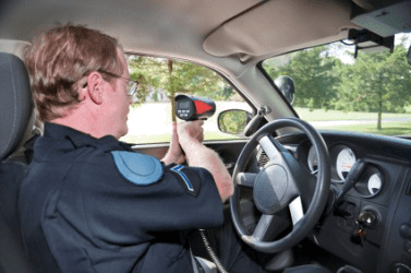 A policeman using a radar gun.
