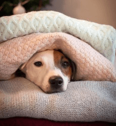 Ziggy's reaction to thunderstorms is to hide under the blankets.