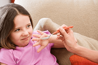 Rebecca rebuffed the medicine that her mother tried to give her because she didn't like the taste.