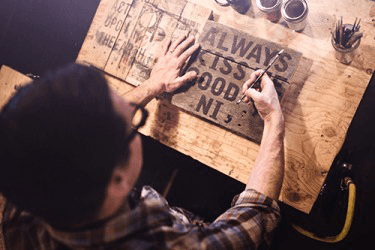 Tim reclaims scrap wood to create one-of-a-kind artistic signs.