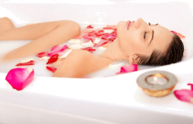 A woman taking a refreshing bath.
