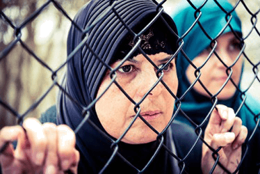 The woman is a refugee and hopes to find a safer place to live for herself and her family.