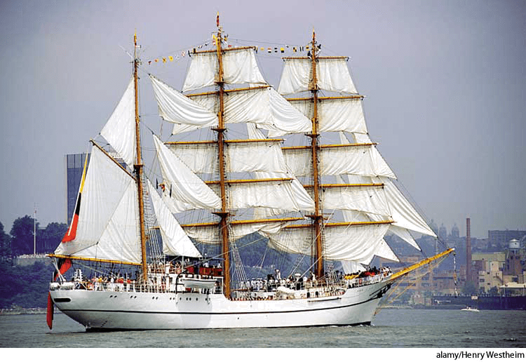 bark 3 也作 barque AHD[bärk] D.J.[bɑːk]K.K.[bɑrk]n.Nautical(名词)【航海】 bark3Ecuadorian tall ship Guayas- A sailing ship with from three to five masts, all of them square-rigged except the after mast, which is fore-and-aft rigged.三桅帆船:有三至五个桅杆的帆船,除了后部的桅杆有纵帆装置其余桅杆都有横帆装置