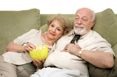 A couple relax in front of the tv.