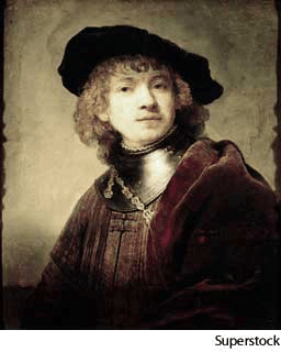 Rembrandt van Rijn 或 Rem·brandt van Ryn AHD[rĕmʹbrănt' vän rīnʹ, -bränt'] (1606-1669) D.J.[ˈremˌbrænt vɑːn ˈraɪn, -ˌbrɑːnt]K.K.[ˈrɛmˌbrænt vɑn ˈraɪn, -ˌbrɑnt]NONE(无词性) Rembrandt van Rijnc. 1634 self-portrait- Dutch painter whose works are unmatched in their portrayal of subtle human emotions. His masterpieces include historical and religious scenes, group portraits, such asThe Anatomy Lesson of Dr. Tulp (1632) and The Night Watch (1642), as well as a series of self-portraits. 林布兰·冯·赖恩:荷兰画家,他的作品对人物细微的神情的描绘无与伦比。他的杰作包括历史或宗教的场景,群体画像,如:《杜尔普博士的解剖学课》 (1632年)和 《夜巡》 (1642年)还有一系列的自画像