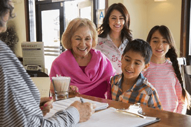 The Lopez family made a reservation at their favorite restaurant to celebrate Grandma's birthday.