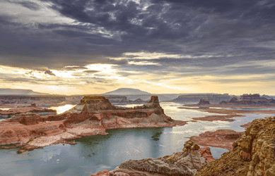 Lake Powell is the reservoir created by the Glen Canyon Dam in Arizona.