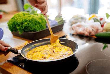 To avoid overcooked scrambled eggs, turn the burner off and use the residual heat to finish the cooking process while the eggs are still a little runny.